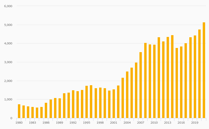 Households' Assets In Dwellings (USD) rose 7.96% to USD 5,138 bil in France in 2021