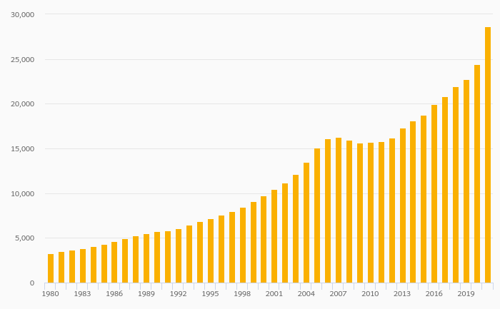 Households' Assets In Dwellings (USD) rose 17.6% to USD 28,681 bil in the USA in 2021