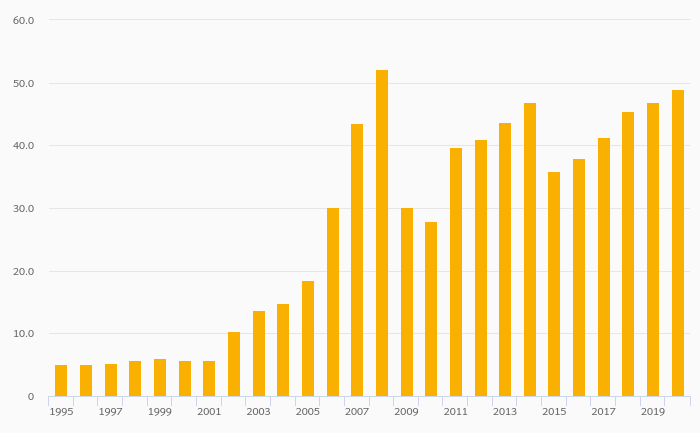 Households' Assets In Dwellings (USD) rose 4.29% to USD 48.9 bil in Latvia in 2020