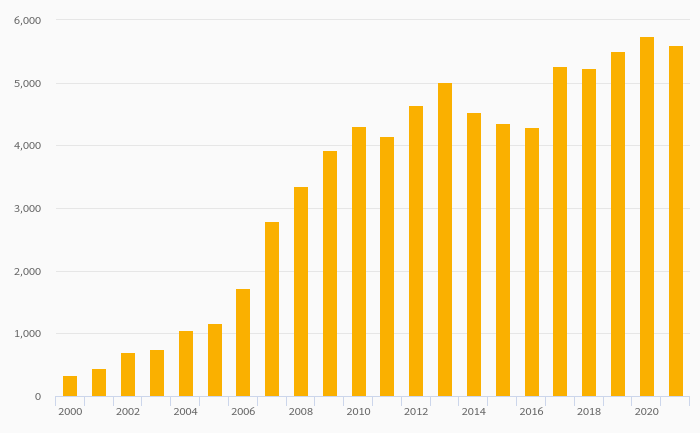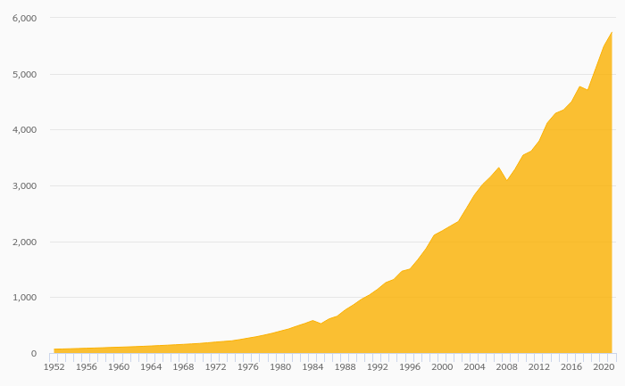 Households' Assets In Life Insurance (USD) rose 4.59% to USD 5,747 bil in the USA in 2021