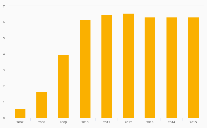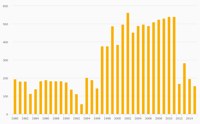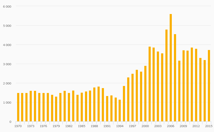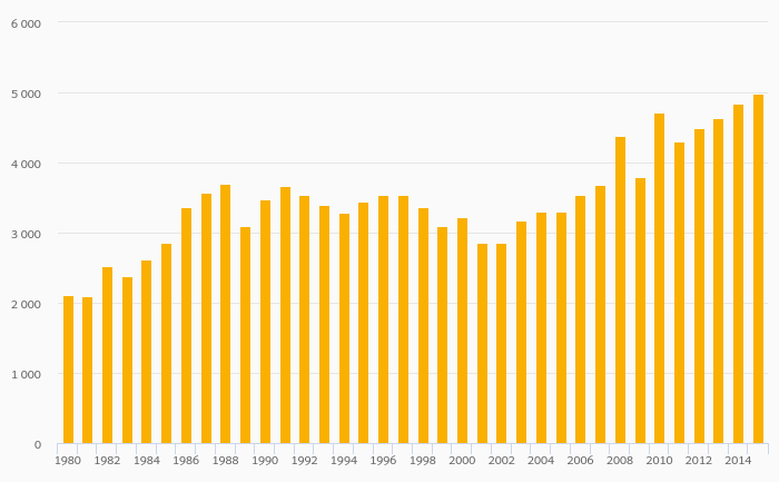 Cadmium Production fell 0.797% to 5,600 tonnes in South Korea in 2015