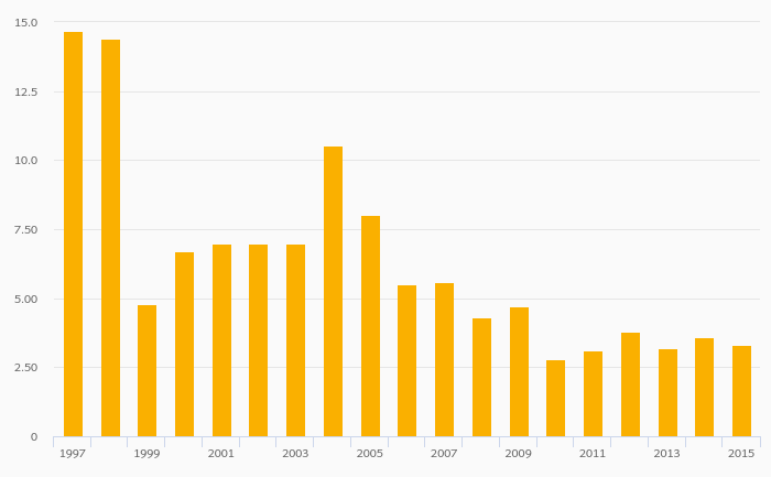 Tin (Smelter) Production fell 3.64% to 2,171 tonnes in Poland in 2015