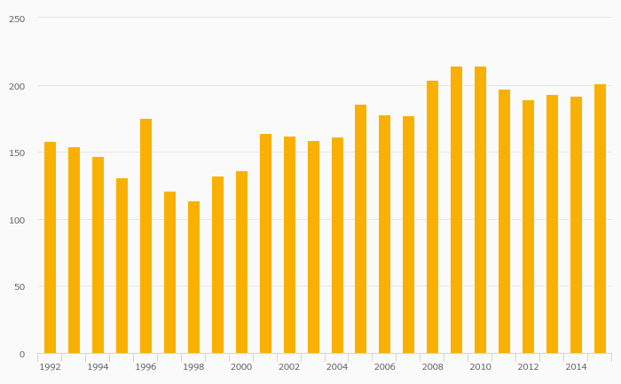Zinc (Mine) Production rose 4.69% to 201 kt in Russia in 2015