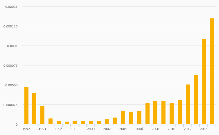 Primary Coal Production (As % of Total Worldwide Production) rose 24.3% to < 0.001% in Tajikistan in 2015