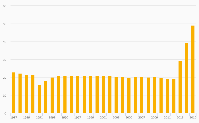 Silver (Mine) Production rose 25.1% to 49.0 kt in Mongolia in 2015