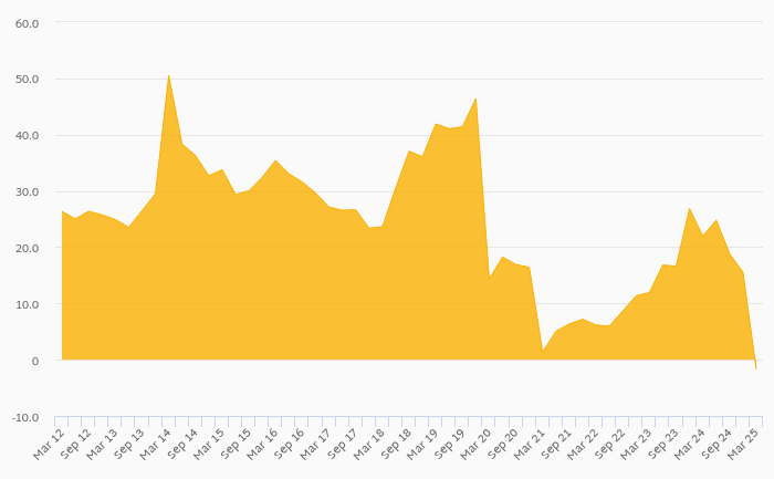Bank Pre-Tax Return on Equity (Pre-Tax ROE) fell 108% yoy to -1.70% in Argentina in 1Q2025