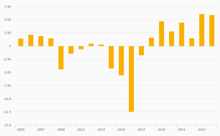 Bank Pre-Tax Return on Equity (Pre-Tax ROE) rose 1.00% to 25.9% in Russia in 2023