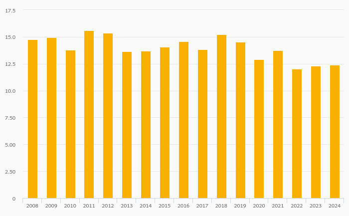 Bank Equity (As % of Bank Assets) rose 0.602% to 12.4% in Rwanda in 2024