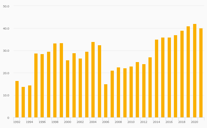 Egg Consumption (Total) fell 4.76% to 40.0 kt in Georgia in 2021