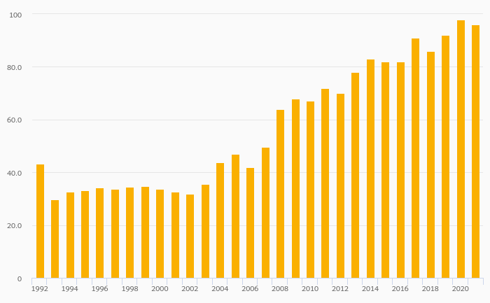 Egg Consumption (Total) fell 2.04% to 96.0 kt in Azerbaijan in 2021