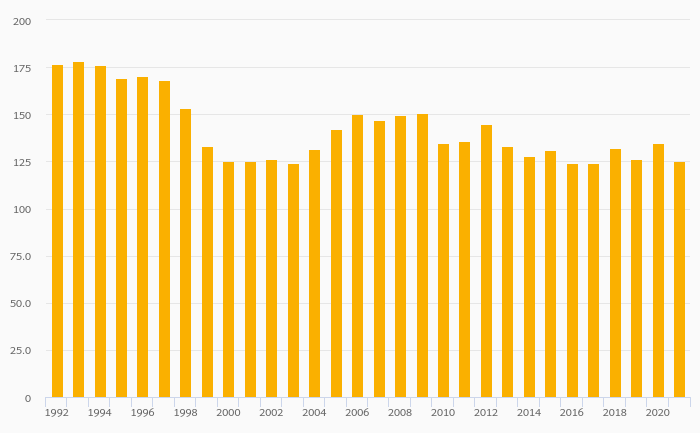 Egg Consumption (Total) fell 7.41% to 125 kt in Belarus in 2021