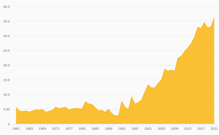 Apple Consumption Per Capita rose 9.30% to 36.2 kg in Albania in 2021