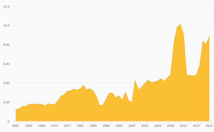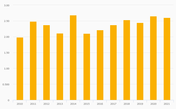 Alcoholic Beverage Consumption Per Capita (Distilled) rose 11.0% to 8.90 litres in Mongolia in 2021