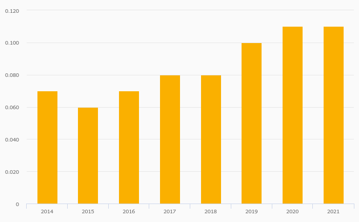 Bean Consumption Per Capita rose 0% to 0.110 kg in Russia in 2021