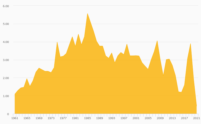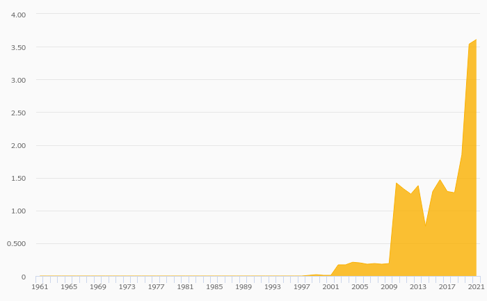 Alcoholic Beverage Consumption Per Capita (Distilled) rose 1.98% to 3.61 litres in Nepal in 2021