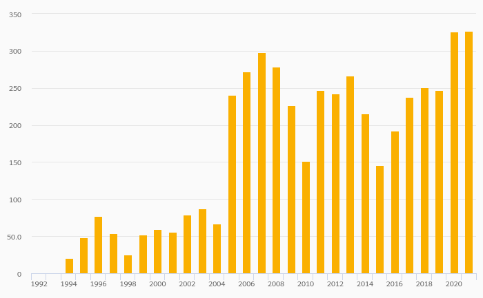 Banana Consumption (Total) rose 0.307% to 327 kt in Ukraine in 2021