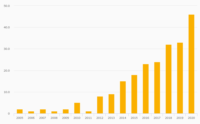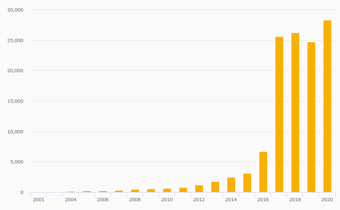 Secure Internet Servers rose 14.5% to 28,308 in Luxembourg in 2020