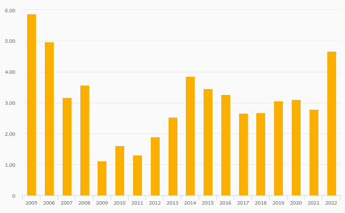 Bank Pre-Tax Return on Assets (Pre-Tax ROA) rose 67.5% to 4.67% in Gambia in 2022