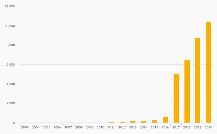 Secure Internet Servers rose 18.4% to 10,382 in Bosnia and Herzegovina in 2020