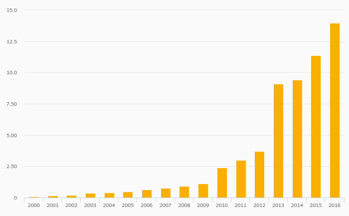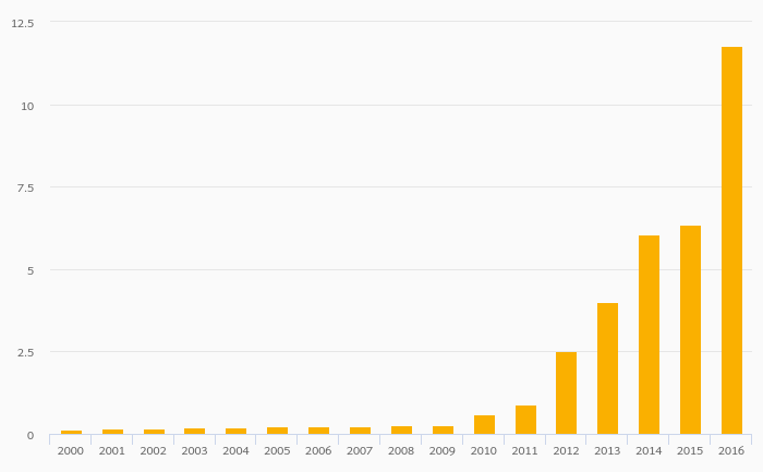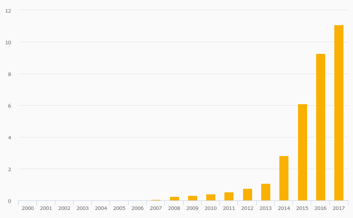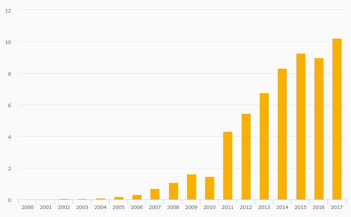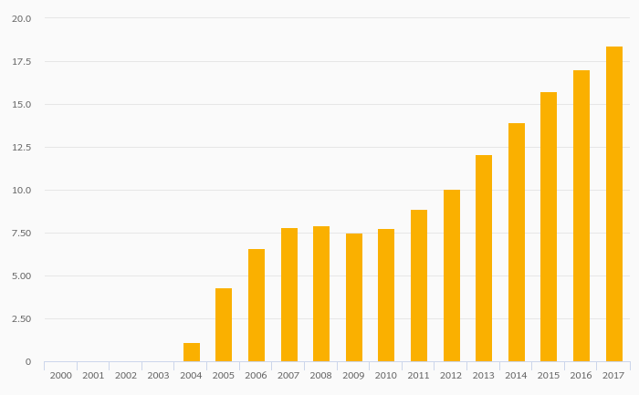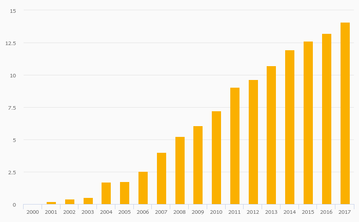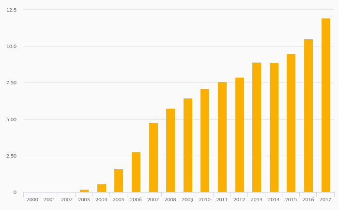 Number of Fixed Broadband Internet Connections rose 13.6% to 11.9 mil in Turkey in 2017