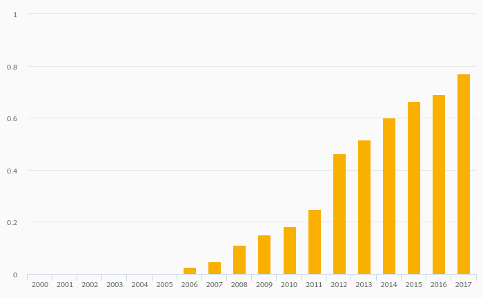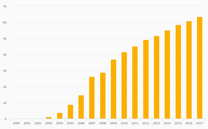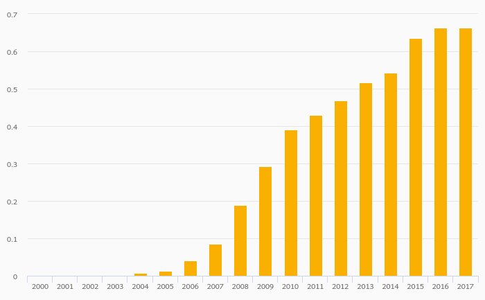 Fixed Broadband Internet Lines Per Household rose 4.28% to 63.3% in Slovakia in 2017