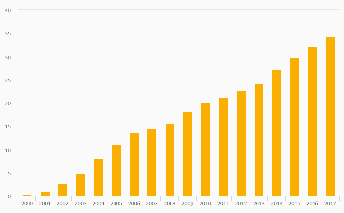 Fixed Broadband Internet Penetration Based on Connections (As % of Population) rose 6.17% to 34.1% in Portugal in 2017