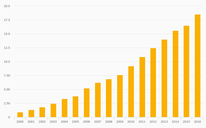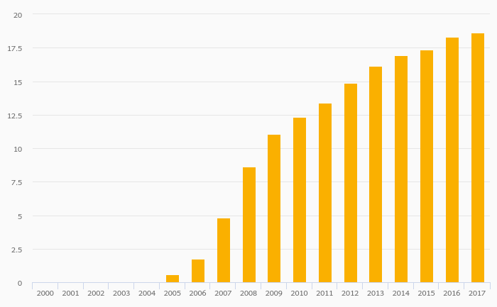 Fixed Broadband Internet Penetration Based on Connections (As % of Population) rose 1.64% to 18.6% in Macedonia in 2017