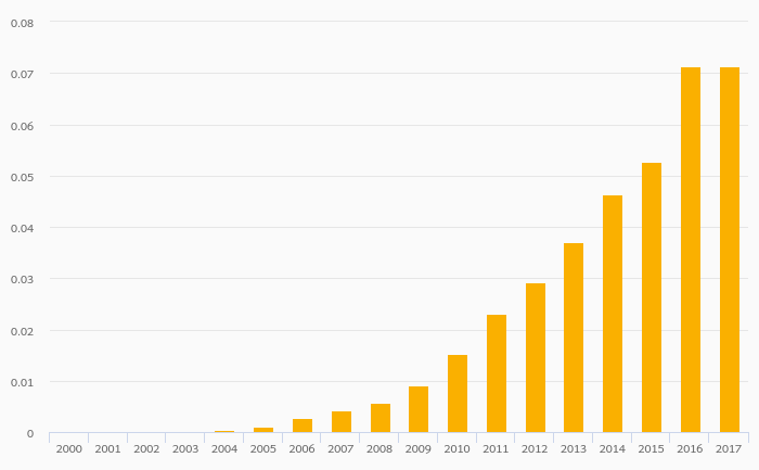 Fixed Broadband Internet Lines Per Household rose 8.33% to 18.4% in Morocco in 2017