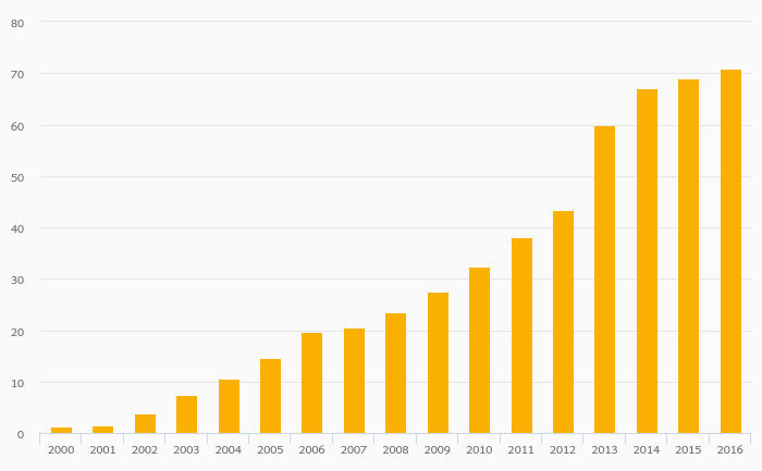 Share of Population Using Internet rose 2.90% to 71.0% in Moldova in 2016