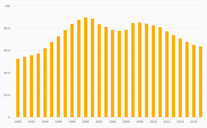 Fixed Lines Per Household fell 1.88% to 63.8% in Estonia in 2017