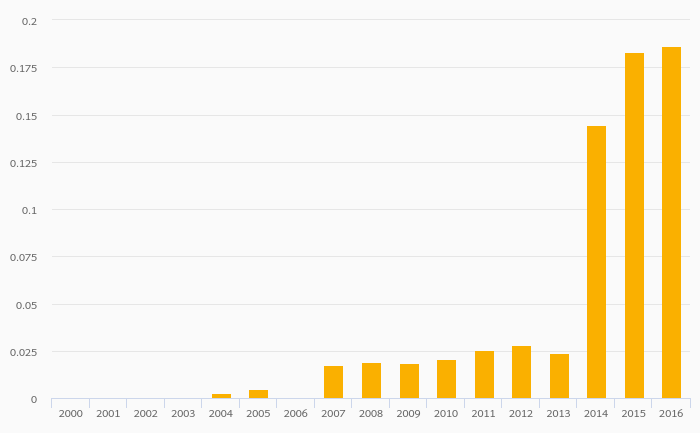 Fixed Broadband Internet Penetration Based on Connections (As % of Population) rose 1.94% to 0.186% in Gambia in 2016