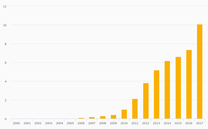 Number of Fixed Broadband Internet Connections rose 37.3% to 10.1 mil in Iran in 2017