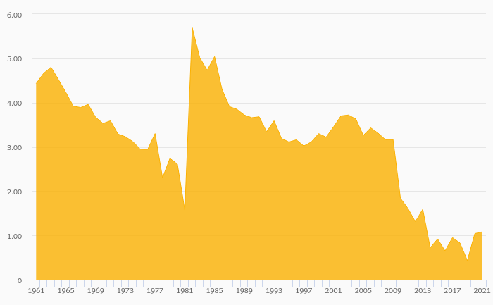 Bean Consumption Per Capita rose 75.7% to 0.650 kg in Tunisia in 2021