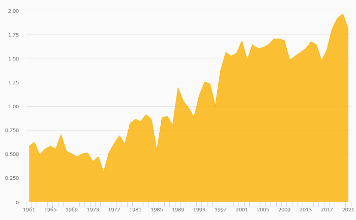 Bean Consumption Per Capita fell 8.16% to 1.80 kg in Vietnam in 2021