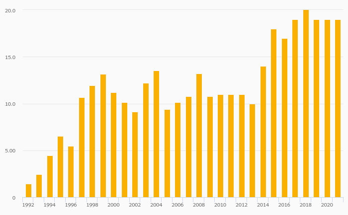 Banana Consumption (Total) rose 0% to 19.0 kt in Estonia in 2021