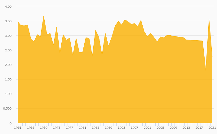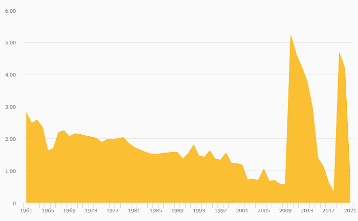 Bean Consumption Per Capita fell 36.5% to 2.26 kg in the USA in 2021