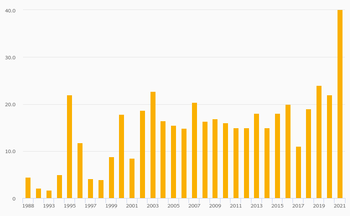 Alcoholic Beverage Consumption Per Capita (Distilled) rose 19.7% to 8.57 litres in Germany in 2021