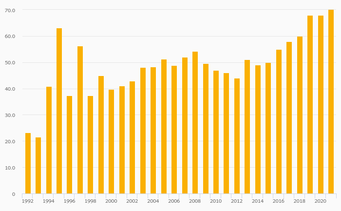 Egg Consumption (Total) rose 1.52% to 67.0 kt in Norway in 2021