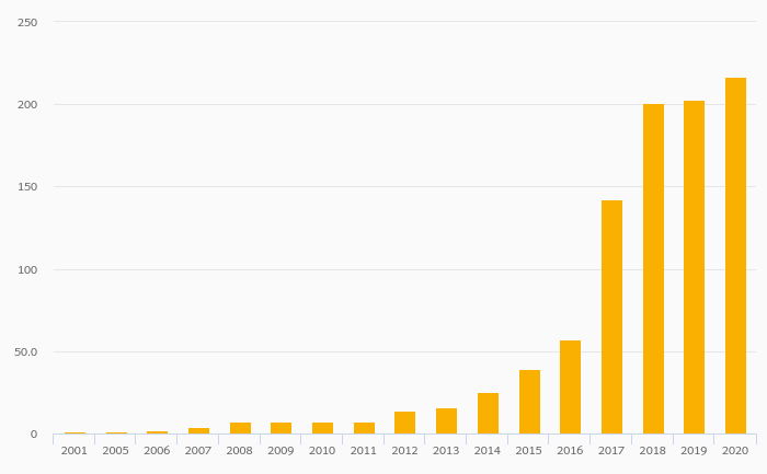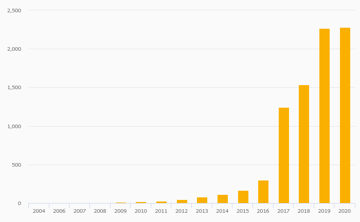 Secure Internet Servers rose 9.53% to 2,000 in Liechtenstein in 2020