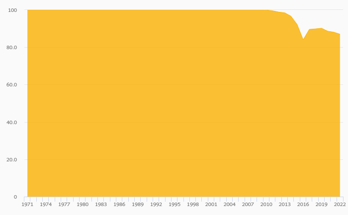 Electricity Production from Oil, Gas & Coal Sources (As % of Total) fell 1.22% to 87.0% in Malta in 2022