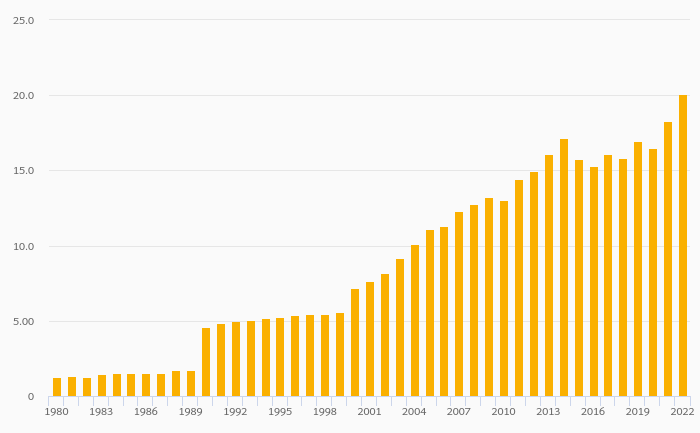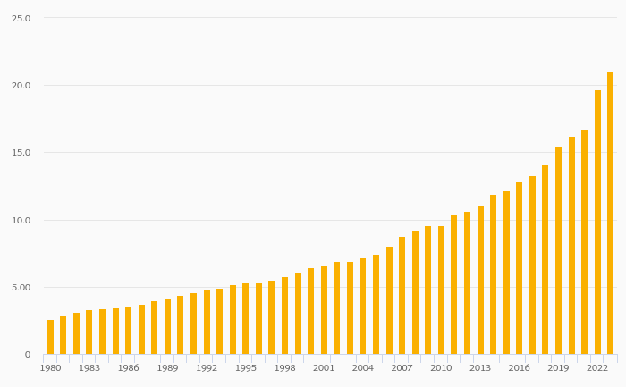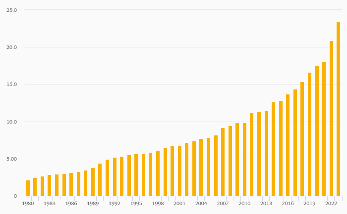GDP Per Unit of Energy Use (PPP $ Per kg of Oil Equivalent) rose 12.4% to USD 23.5 in Germany in 2023