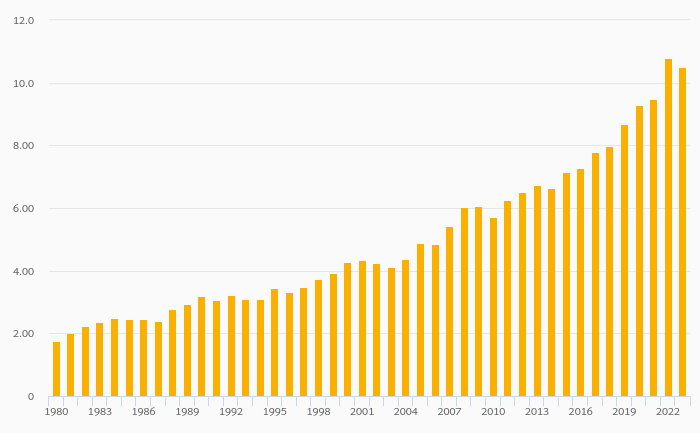 GDP Per Unit of Energy Use (PPP $ Per kg of Oil Equivalent) fell 2.73% to USD 10.5 in Finland in 2023