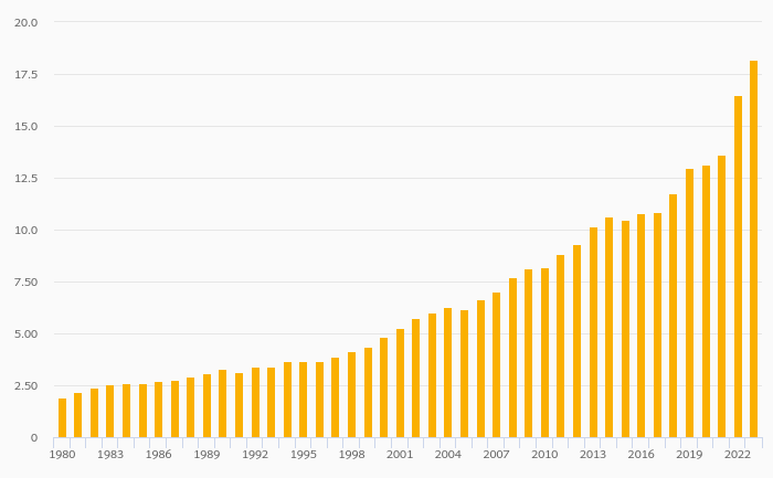 GDP Per Unit of Energy Use (PPP $ Per kg of Oil Equivalent) rose 7.05% to USD 21.1 in the European Union in 2023