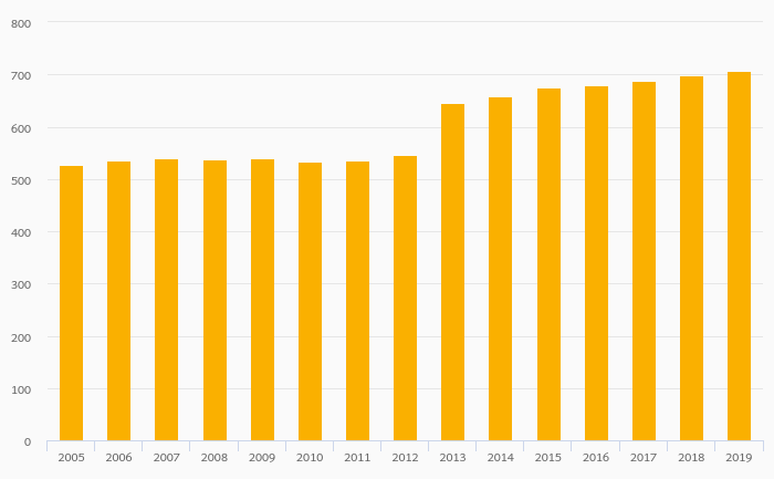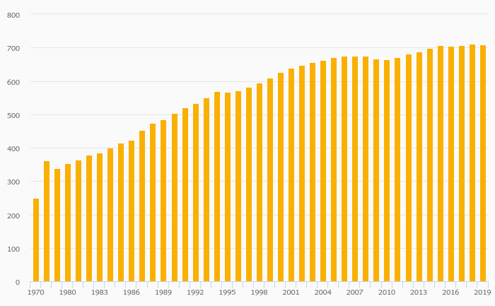 Passenger Cars Per 1,000 People rose 1.30% to 707 vehicles in New Zealand in 2019