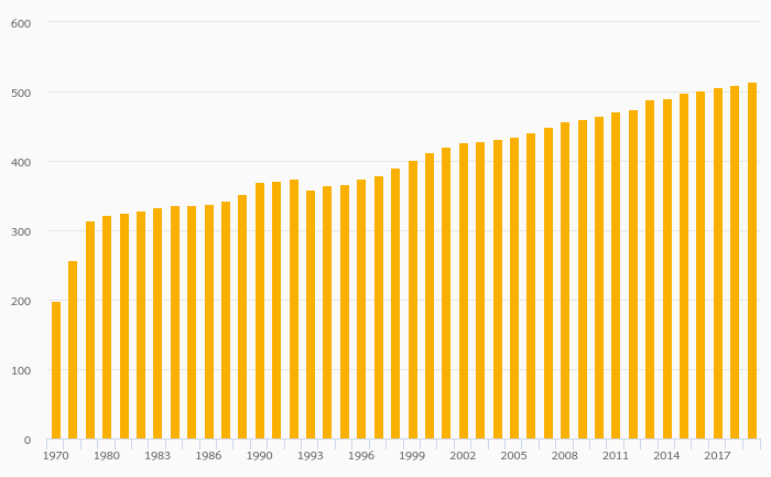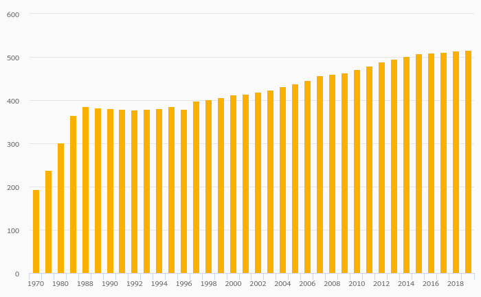 Passenger Cars Per 1,000 People rose 0.478% to 516 vehicles in Norway in 2019