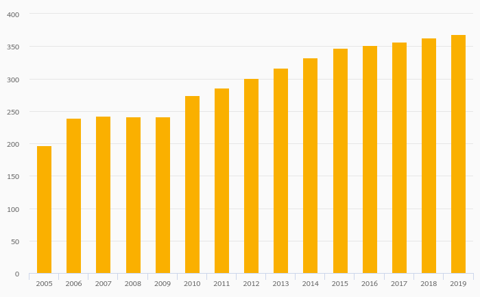 Passenger Cars Per 1,000 People rose 1.48% to 368 vehicles in Libya in 2019