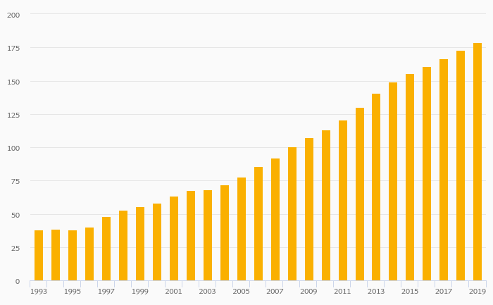 Passenger Cars Per 1,000 People rose 3.47% to 179 vehicles in Moldova in 2019