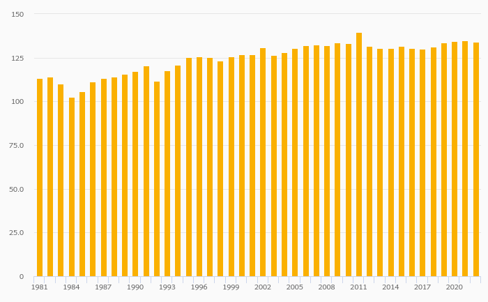 Female to Male Tertiary Enrollment Rate fell 0.742% to 134% in Slovenia in 2022