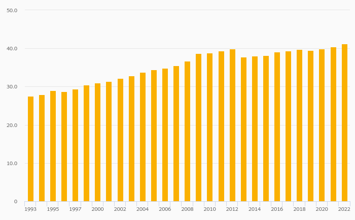 Female Teachers, Tertiary Education (As % of Total) rose 1.93% to 41.2% in Germany in 2022