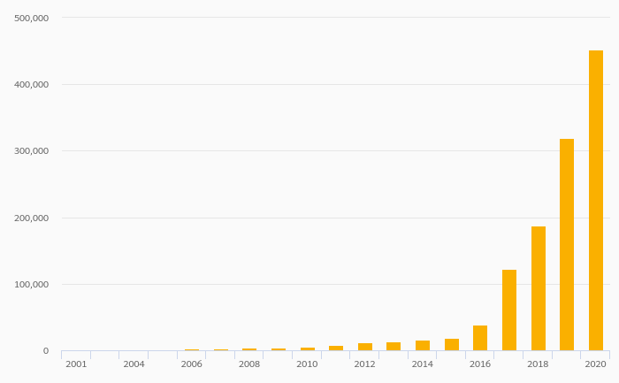Secure Internet Servers rose 41.7% to 451,490 in Finland in 2020